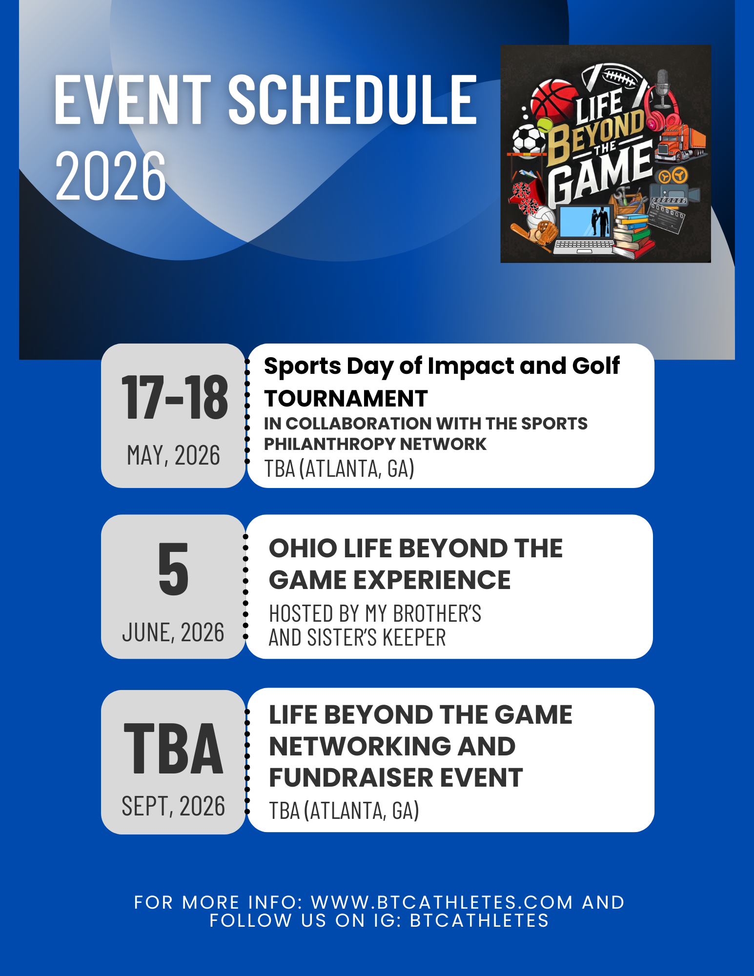 BTC (Beyond The Champion)…Life Beyond The Game is a life-changing organization that prepares K-12 and collegiate athletes across the United States for life beyond their individual sport. Based out of Atlanta, Georgia, BTC: Life Beyond The Game was founded because we saw a need in the community to prepare athletes for what their lives may look like in the event they don’t make it to a professional league. We support and encourage all student-athletes across the board.